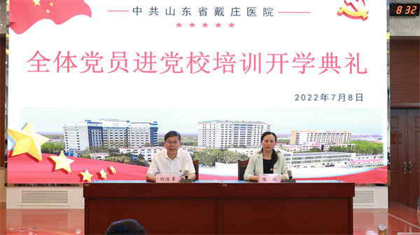 為全面提升醫(yī)院全體黨員干部政治素養(yǎng),進(jìn)一步增強(qiáng)“四個(gè)意識(shí)”、堅(jiān)定“四個(gè)自信”、捍衛(wèi)“兩個(gè)確立”、做到“兩個(gè)維護(hù)”,切實(shí)把思想和行動(dòng)統(tǒng)一到黨中央重大決策部署上來,根據(jù)市直機(jī)關(guān)工委和市衛(wèi)健委的安排,7月8日上午,我院舉行“全體黨員進(jìn)黨校”培訓(xùn)活動(dòng)開班儀式,整個(gè)培訓(xùn)活動(dòng)分4期完成。醫(yī)院黨委書記謝傳革出席中共濟(jì)寧市委黨校衛(wèi)生健康委分校-戴莊醫(yī)院教學(xué)點(diǎn)開班儀式并講話,黨委副書記陳敏主持大會(huì),黨委委員、副院長張躍兵,黨委委員、副院長辛建及全院100余名黨員參加大會(huì)。