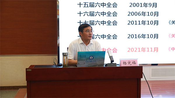 隨后,濟(jì)寧市委黨校黨史黨建教研部主任、教授,濟(jì)寧市委組織部干部教育“圣地名師”楊憲福以《百年大黨的政治宣言和行動(dòng)綱領(lǐng)——學(xué)習(xí)貫徹黨的十九屆六中全會(huì)精神》為主題,為學(xué)員上了一堂內(nèi)容豐富、別開生面的黨課。使他們進(jìn)一步了解了中國共產(chǎn)黨波瀾壯闊的發(fā)展歷史,更加深刻理解了黨的十九屆六中全會(huì)精神實(shí)質(zhì),更加明確在今后的工作中要做到自覺深化理論武裝,提高政治站位,強(qiáng)化使命擔(dān)當(dāng),積極履職盡責(zé),共同譜寫醫(yī)院高質(zhì)量發(fā)展的新篇章,以優(yōu)異成績迎接黨的二十大召開。