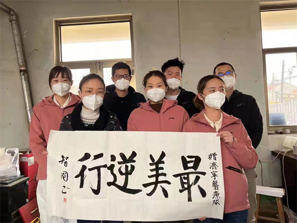 “永遠記得3月19日那天,天陰的像一口黑鍋籠罩著上空,瑟瑟北風中,我們被凍得手腳麻木,全身冰涼,我們經過兩個多小時的顛簸,早上6:15分就到達目的地,開啟了一天的工作。在緊張有序采樣時,天空竟然飄起了雪花,雪花中還夾著小雨。站在雨雪中,麻木的手已捏不住棉簽、擰不動試管蓋,我心里默念著,一定要堅持住……”這是領隊蘇同同記錄在抗疫日記《平凡的我 用微光點亮春天》中的所見所感,在9天的支援工作中,醫療隊員受過凍、淋過雨,熬過夜,生過病,但是沒有一個人叫苦叫累,更沒有一個人缺席抗疫一線。“我們的‘抗疫法寶’就是考慮周全、互相照顧、互相配合,如果一個人的工作完成了,就一定會主動參與到其他同伴的工作之中。”領隊蘇同同如是說。 謝傳革對支援濱州抗疫醫療隊的工作表示高度贊賞。他說醫院深入踐行習近平總書記關于疫情防控工作的重要指示精神,迅速把思想和行動統一到市委、市衛健委的決策部署上,樹牢人民至上的理念,把打贏疫情防控阻擊戰殲滅戰作為當前的重大政治任務,迅速把醫療資源和醫療力量向抗擊疫情聚焦,做到上級有部署,醫院有行動。濱州抗疫醫療隊切實發揚黨員先鋒模范作用和“戴醫人”“特別能吃苦、特別能戰斗、特別能奉獻”過硬作風,沖鋒在前、戰斗在前,用您們的辛苦指數、奉獻指數換取濱州人民群眾的健康指數、平安指數、滿意指數。