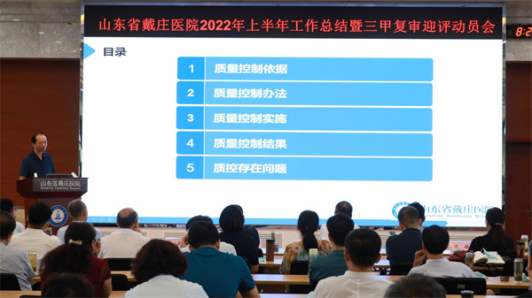 17個臨床醫技科室和8個綜合管理科室匯報了2022年上半年重點工作目標完成情況和“三甲”醫院復審迎評進展情況,展現各自工作亮點,客觀分析存在的問題,明確下一步的工作思路和措施。