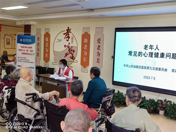 查體咨詢完后,組織委員高彩鳳為老年人帶來了精彩的心理健康講座,講座圍繞老年人常見的心理健康問題,如不安全感、孤獨感、適應性差、情緒不穩定等進行了深入淺出地講解,并教會了常用的幾種行為治療技術,引導老年人結合自身的情況有針對性的進行個人心理調適。