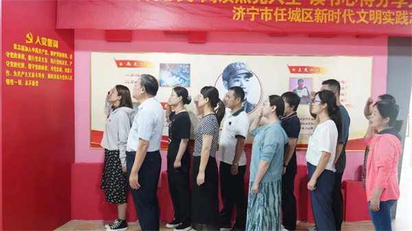秋高氣爽,云淡風輕,8月31日,山東省戴莊醫(yī)院第十黨支部一行11人在支部書記柳群方的帶領下,來到濟寧市擁軍優(yōu)屬協(xié)會黨建活動室參觀學習,大家相繼參觀了“擁軍擁屬,擁政愛民”,“不忘初心,牢記使命”宣傳區(qū),當看到“替烈士回家看爹娘”的活動區(qū)時,大家駐足良久,真實的圖片以及工作人員聲情并茂的講解,讓黨員深受教育。