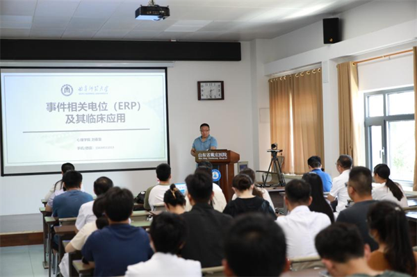 值第六個中國醫師節到來之際,為提升我院醫師科研水平,提高對神經電生理技術事件相關電位(ERP)的認知與應用能力,營造以學促干強本領的良好氛圍,8月10日,我院邀請曲阜師范大學心理學院碩士研究生導師劉春雷副教授來院進行授課和科研指導。醫院黨委副書記陳敏主持培訓會,相關科室負責人、臨床醫生和研究生參加培訓。