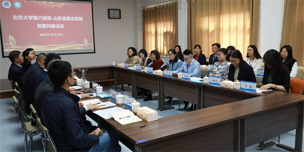 岳偉華和謝傳革分別介紹了北京大學第六醫院、山東省戴莊醫院的發展歷史、黨建工作、學科建設、人才培養、科研教學等方面的情況。雙方圍繞黨建共建、人才培養、科研教學等進行了深入交流探討。