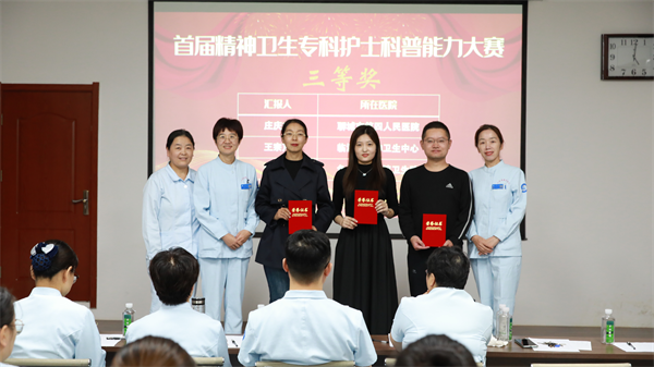 隨后與會領導為房磊等16名學員頒發(fā)了“首屆精神衛(wèi)生專科護士科普能力大賽”獲獎證書并合影留念。