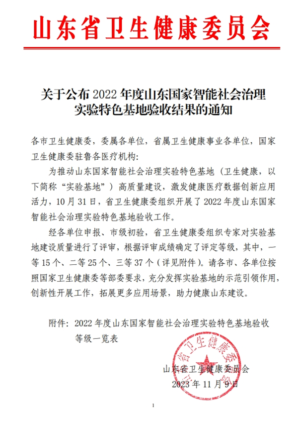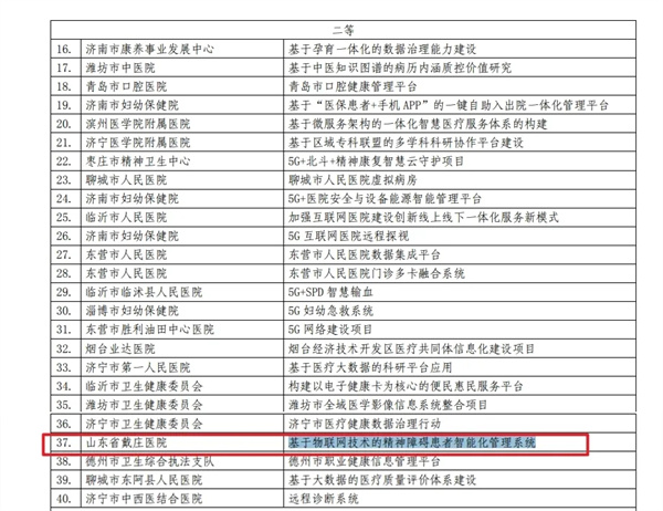 經過一年的探索與建設,我院申報的《基于物聯網技術的精神障礙患者智能化管理系統》項目,通過2022年度山東國家智能社會治理特色基地驗收,并榮獲二等獎,這是對醫院在智能社會治理方面的卓越表現和突出貢獻的充分肯定。