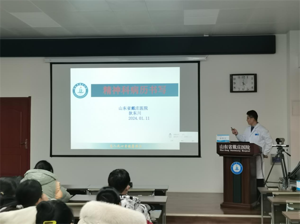 隨后,孔祥娟以《病史采集的技巧與方法》為題進(jìn)行培訓(xùn),結(jié)合自身豐富的臨床實(shí)踐經(jīng)驗(yàn)向同學(xué)們傳授基本精神障礙病史采集重要原則、基本知識(shí)以及技巧方法。狄東川以《精神科病歷書(shū)寫(xiě)》為主題開(kāi)展培訓(xùn),圍繞病歷書(shū)寫(xiě)的諸多要點(diǎn)展開(kāi)講解。張杰針對(duì)精神科安全管理方面進(jìn)行了詳細(xì)的介紹,提醒大家要保持高度的安全意識(shí),為以后更好地服務(wù)于臨床實(shí)踐打下良好基礎(chǔ)。實(shí)習(xí)生們紛紛表示受益匪淺,對(duì)今后的臨床實(shí)習(xí)樹(shù)立了更加充足的信心。
