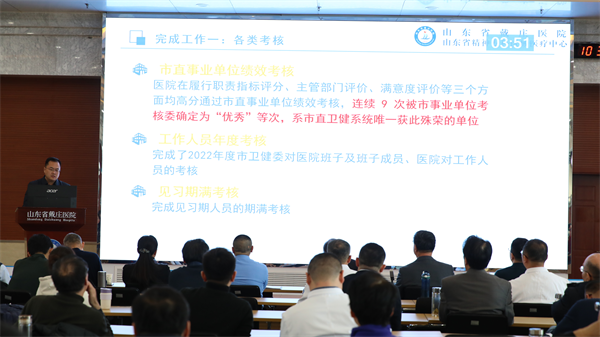 會上,40位臨床一線及職能科室負(fù)責(zé)人與30位病區(qū)護士長依次以PPT形式,精煉明晰地梳理出2023年科室指標(biāo)完成情況、工作實績、管理舉措等方面的亮點,實事求是地曬出了2023年科室的問題清單,對科室發(fā)展的短板、弱項進行深入剖析與全面總結(jié)。結(jié)合醫(yī)院整體規(guī)劃,明確科室2024年發(fā)展的新思路、新目標(biāo)、新規(guī)劃,展現(xiàn)出時不待我、只爭朝夕的精神面貌。與會人員秉持客觀公正的原則,對科室主要負(fù)責(zé)人、護士長、科室進行民主測評。