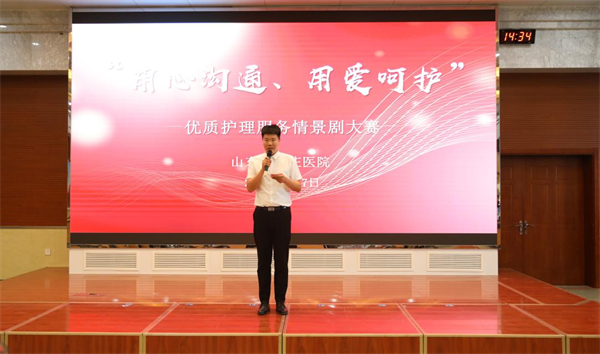 在第113個“5.12”國際護(hù)士節(jié)來臨之際,為深化優(yōu)質(zhì)護(hù)理服務(wù)內(nèi)涵,提升醫(yī)院護(hù)理服務(wù)品質(zhì),構(gòu)建健康和諧護(hù)患關(guān)系,5月7日下午,我院成功舉辦“用心溝通 用愛呵護(hù)”優(yōu)質(zhì)護(hù)理服務(wù)情景劇大賽。醫(yī)院黨委書記謝傳革出席比賽,特邀醫(yī)院黨委副書記李武、陳敏,黨委辦公室主任孫永科、院長辦公室主任張玉強、醫(yī)教部主任王彬、宣教部主任侯峰、特檢科主任山君來等擔(dān)任評委。