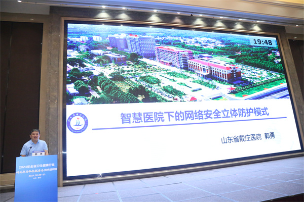 在此期間,山東省衛(wèi)生信息與健康醫(yī)療大數(shù)據(jù)學(xué)會舉辦的衛(wèi)生健康行業(yè)網(wǎng)絡(luò)安全和數(shù)據(jù)安全技術(shù)培訓(xùn)班也同期舉行。郭勇主任在培訓(xùn)班上分享了《智慧醫(yī)院下的網(wǎng)絡(luò)安全立體防護(hù)模式》的精彩講座,深入剖析了我院在智慧醫(yī)院建設(shè)過程中的網(wǎng)絡(luò)安全策略和實踐經(jīng)驗。他詳細(xì)介紹了我院如何通過實施人防、技防、制防等多重防護(hù)措施,針對不同區(qū)域和網(wǎng)絡(luò)實行重點(diǎn)防護(hù),以最合理的投入獲取最佳的防護(hù)效果,構(gòu)建了一個全方位、多層次的立體防護(hù)網(wǎng)絡(luò),確保了醫(yī)院信息系統(tǒng)的安全穩(wěn)定運(yùn)行。