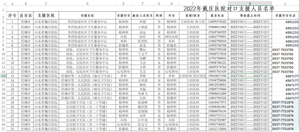 | 20 | 王正 | 男 | 32 | 精神衛生專業 | 老年精神科 | 主治醫師 | 隊長 | 任城區第二人民醫院(喻屯衛生院) | 精神科 |