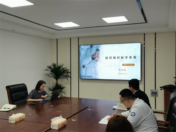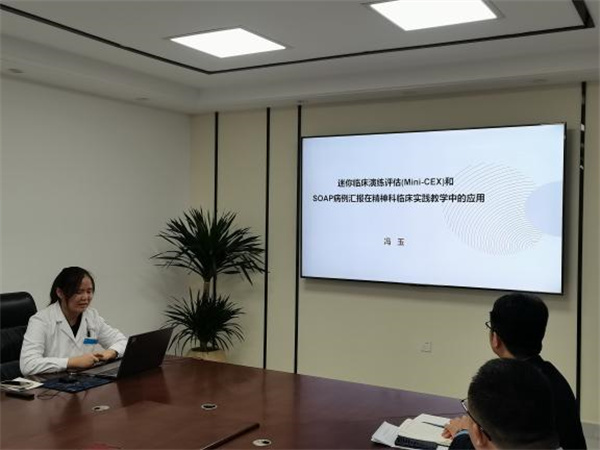 各科室教學秘書和優秀臨床教師代表分別進行了經驗分享和交流。他們結合自身的教學實踐,分享了在教學過程中的心得體會、創新方法以及遇到的問題和解決方案。精神四科副主任周亞楠就如何做好教學查房進行培訓,介紹規范化的教學查房的流程和注意事項,結合錄制的規范化教學查房視頻進行了分享;精神二科主治醫師馮玉講解了Mini-CEX和 SOAP考核在精神科臨床實踐教學中的應用,系統介紹了兩種考核方法、具體評估步驟和注意事項,為醫院臨床教師進行高質量臨床教學評價提供了新的視角。最后,醫教部副主任王中剛介紹了醫院臨床教學工作的總體情況與要求,在下一步教學工作中要加強對臨床教學過程的監督與管理,定期開展教學質量評估,及時發現并解決出現的問題。
