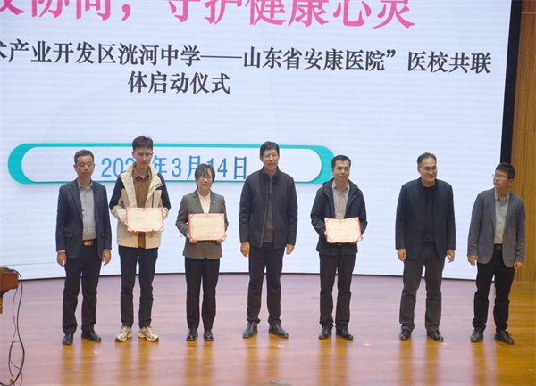 隨后,洸河中學黨委書記、校長胡克亮為兒童青少年心理科主任錢麗菊、副主任尚魯寧、侯玉坤醫生頒發“學校心理健康顧問”聘書。