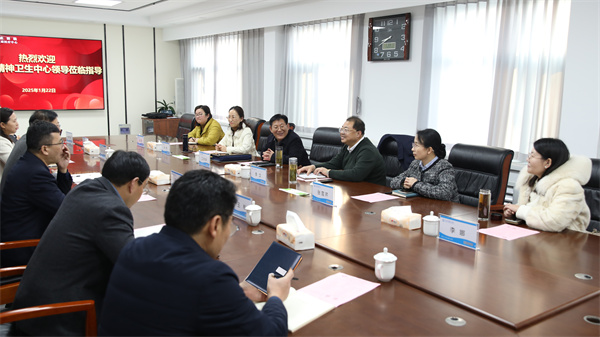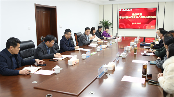 1月22日上午,棗莊市精神衛生中心黨委書記江永華,黨委副書記、院長李文,黨委副書記盧偉,副院長張雪芹一行6人來院參觀交流。我院黨委書記謝傳革、黨委副書記陳敏、紀委書記王年生、副院長張躍兵及相關科室負責人陪同活動。