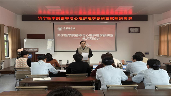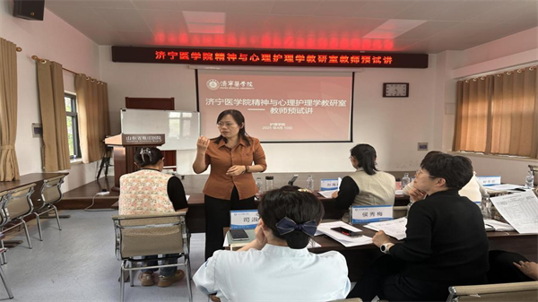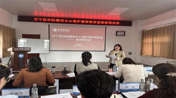 為進一步加強師資隊伍建設,提升精神專科護理教學技能,打造一支高學歷、年輕化的精神專科護理教師隊伍,4月10日下午,我院舉行了精神與心理護理學授課師資預試講活動。此次活動邀請濟寧醫學院護理學院副院長、教授孫海婭,精神與心理護理學教研室主任、副教授時忠麗等5位骨干教師組成評審團現場指導。預試講活動由醫院護理部主任、精神與心理護理學教研室副主任侯秀梅主持。醫院黨委副書記陳敏和精神與心理護理學授課教師參加活動。