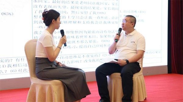在技術示范環節,我院兒童青少年心理科心理治療師張東、張凌慧通過現場角色扮演的方式,生動展示了“思維記錄表的應用”與“垂直下降技術”的操作流程。思維記錄表可以幫助來訪者識別自動化思維,挑戰其存在的認知歪曲,并生成適應性反應,最終建立認知-情緒-行為的聯結,是CBT的核心干預工具。兩位治療師通過現場演示,將抽象的干預技術轉化為可操作的臨床步驟。