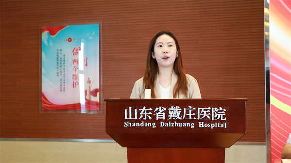 物理治療科、精神康復科主任李坤博士代表醫院中青年業務骨干作表態發言。他提到,入職兩年來,從物理治療科的成立到濟寧市重點實驗室獲批、省自然科學基金立項、國家腦機接口重大專項臨床應用示范基地的落地,每一項成績的取得,都凝聚著院黨委的堅強領導和優秀人才隊伍的硬核支撐。醫院擁有優質的醫療資源和出色的科研平臺,各位新同事要潛心鉆研、開拓創新,與醫院同頻共振、同向而行,攜手繪就壯麗事業藍圖,為“戴醫”書寫璀璨新篇。